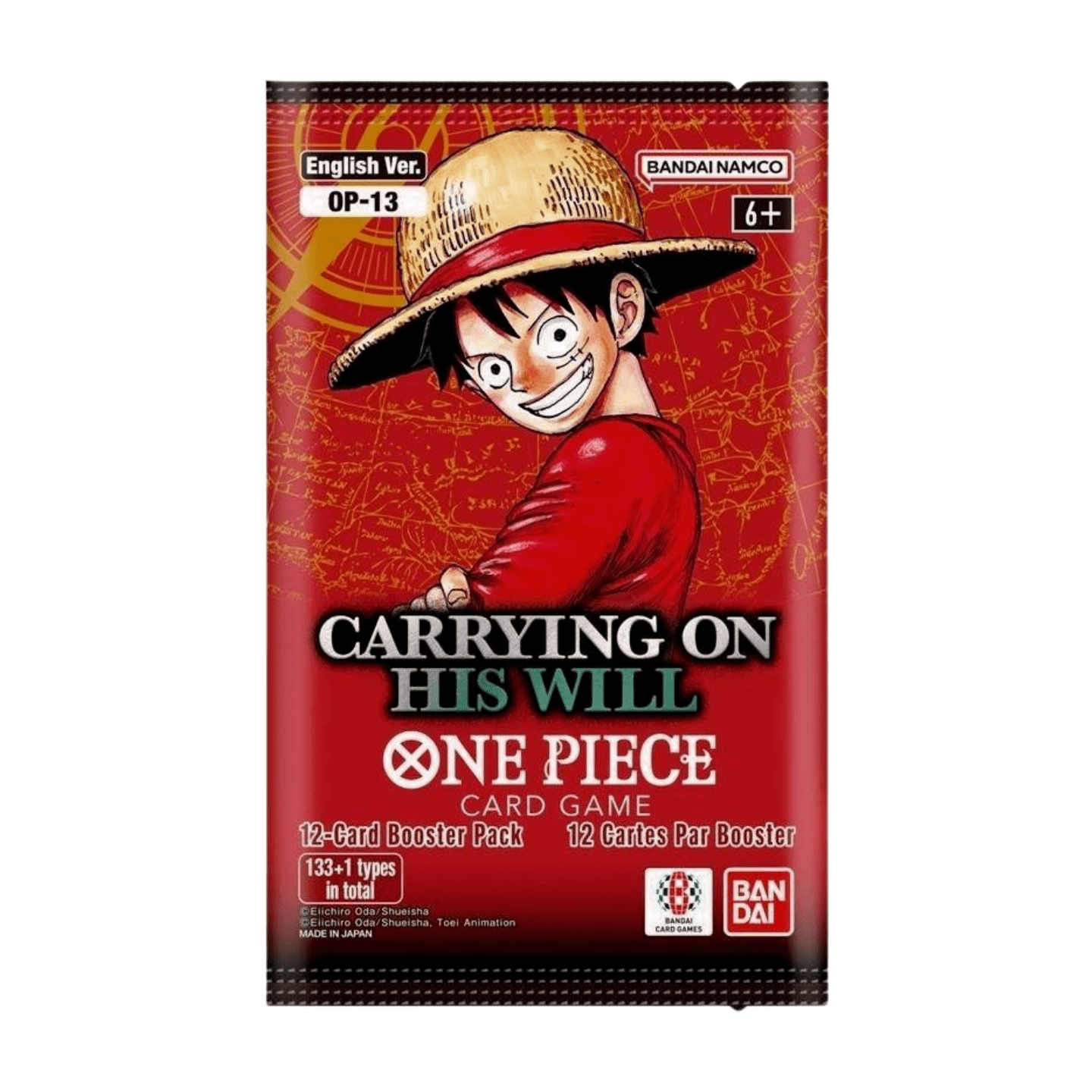 Expand your One Piece Card Game collection with the Carrying on his Will Booster OP-13 (English). Each booster pack contains 12 cards, giving players a chance to collect new strategies, rare cards, and powerful Leaders. With over 128 card types in the set, this booster is perfect for both collectors and competitive players looking to enhance their decks.